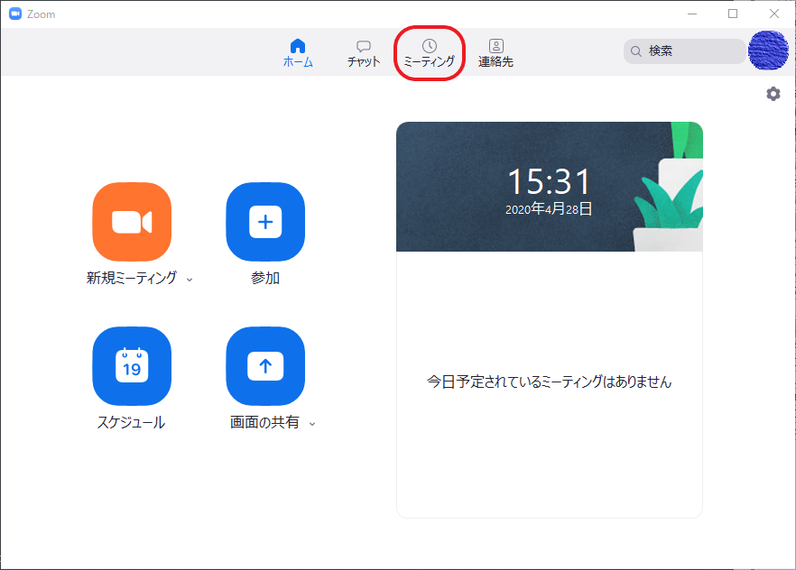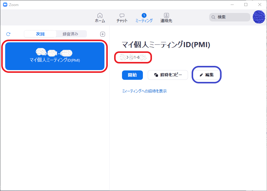 ①自分のミーティングルームIDを確認は、赤枠をクリック