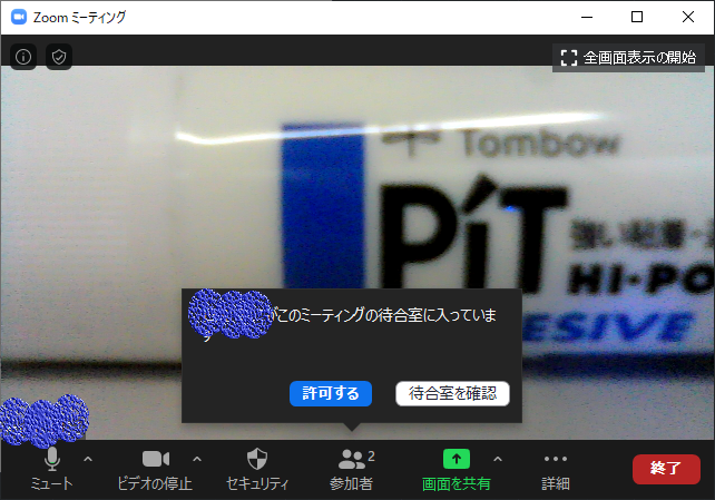 ※ビデオの停止をクリックしたら自分の顔が見えなくなり黒になり自分の名前だけ出ます。